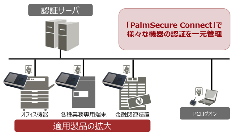 近年、手のひら静脈認証は、企業や自治体などのセキュリティ対策として、PCログオン用途での活用が増加しているなか、認証を必要とするその他の業務システムやオフィス機器への適用のニーズも高まっています。