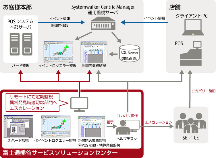 流通小売業の店舗システムに特化した安価で効率的な監視サービス機能を提供します。