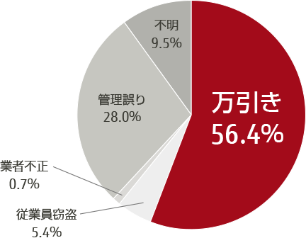 小売業における不明・ロス金額は万引きによる被害が高いとされています。