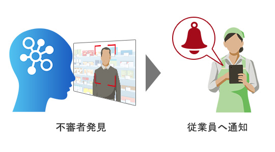 AIがリアルタイムに不審な動きをチェックし、従業員へ自動通知