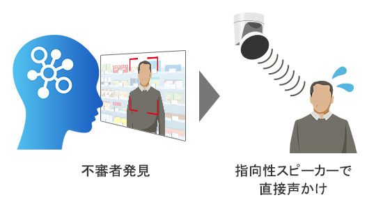AIが不審者を発見すると指向性スピーカーが不審者に直接声かけ