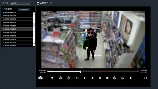 店内カメラ映像やAIの不審者検知結果をローカル保存