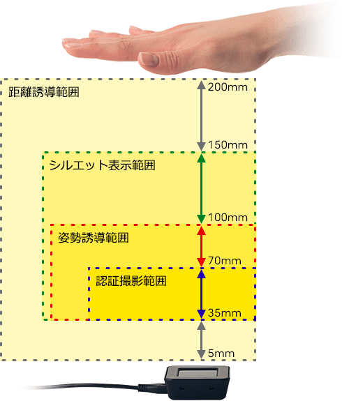 (注1)PalmSecure-F Pro⁺のエンハンスモードをOFFにした場合は、PalmSecure-F Proと同様の範囲になります。
