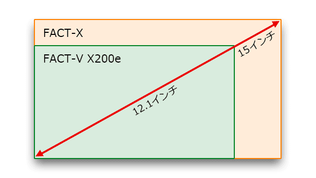 当社従来機FACT-V X200eでは12.1インチのディスプレイを採用していましたが、FACT-Xでは15インチのディスプレイを採用しています。