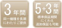 さらに、標準の3年間にプラス5年間の保障期間を追加した、8年間長期保証プランをオプションでご用意しました。