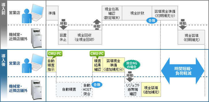 FUJITSU 金融ソリューション CMU-PC(自動機店内監視システム) 現金管理機能の特長イメージ図