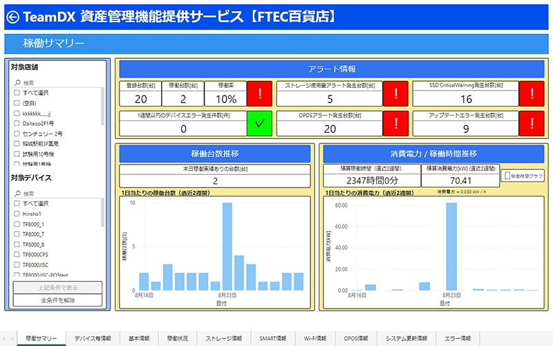 ※店舗単位での絞り込みや、特定の端末単体の情報表示も可能