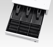 省スペース分離設置用の小型ドロアから大容量の大型ドロアまでの3タイプに加え、自動釣銭釣札機接続に適した薄型ドロアも選択できます。