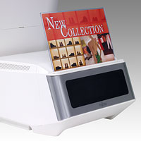 一体型カスタマーディスプレイは、コンパクトな設置が可能です。また、POPが立てられるスリットをご用意。広告スペースとして自由にお使いいただけます。