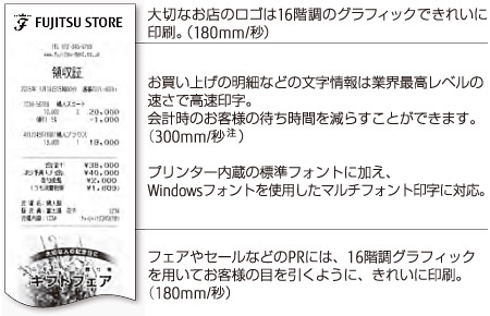 高速で多彩なレシート印字により、お客様サービスを向上
