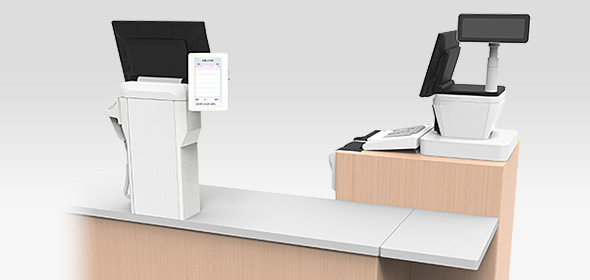 プリンター内蔵により、様々なシーンにフィットするスタイリッシュなミニマムオールインワンPOS。電子多項目セットも接続可能で、専門店・百貨店・量販店まで幅広い業種に対応可能です。