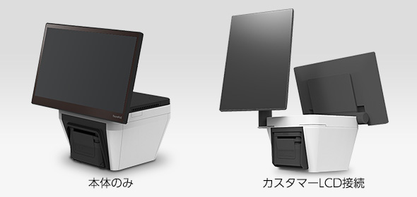 商品名や価格を表示可能なカスタマーディスプレイと、画像や動画なども表示可能なカスタマーLCDをご用意。