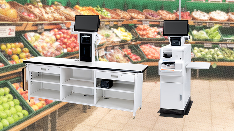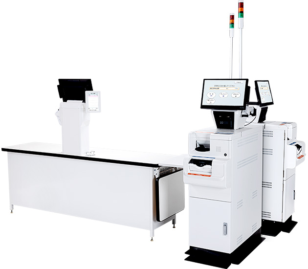 - 「セルフペイメントシステム」では1人制運用で、通常レーンPOSの2人制運用と同レベルのスピードでチェックアウト業務が可能になります。