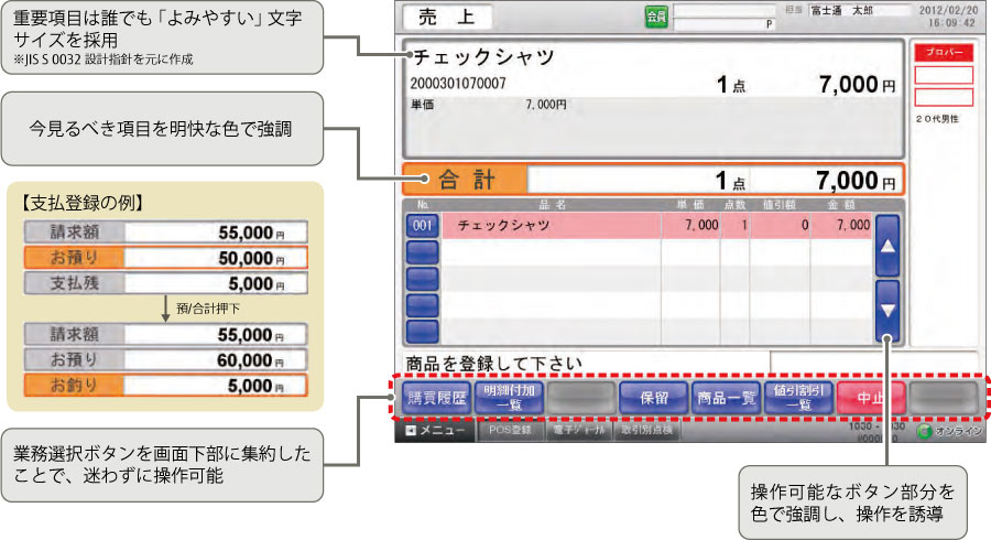 新人・アルバイトの即戦力化に対応できるよう、直感的で分かりやすい操作性を実現しました。