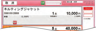返品や取消操作時は背景色が赤く変更され、視覚的に注意を促します。