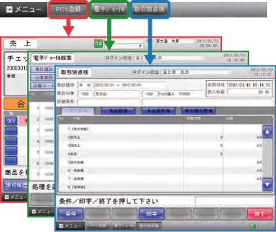 メニューに戻らずにワンタッチで簡単に業務画面が切り替わります。