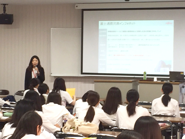 株式会社富士通鹿児島インフォネットは、鹿児島女子短期大学 教養学科の学生を対象に「ICT業界の仕事について」というテーマで講演を行いました。