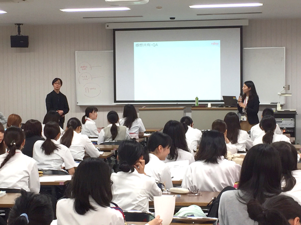 ICT業界の魅力や可能性を知り、それぞれのライフデザインやキャリアデザインに活かしてほしいという思いを込めて登壇いたしました。興味を持ってもらいやすいよう、動画視聴や、実際に手を動かし 描いて考えるワークも取り入れました。学生の皆さんが自分ごととして、真摯に耳を傾けてくださる様子が印象的でした。