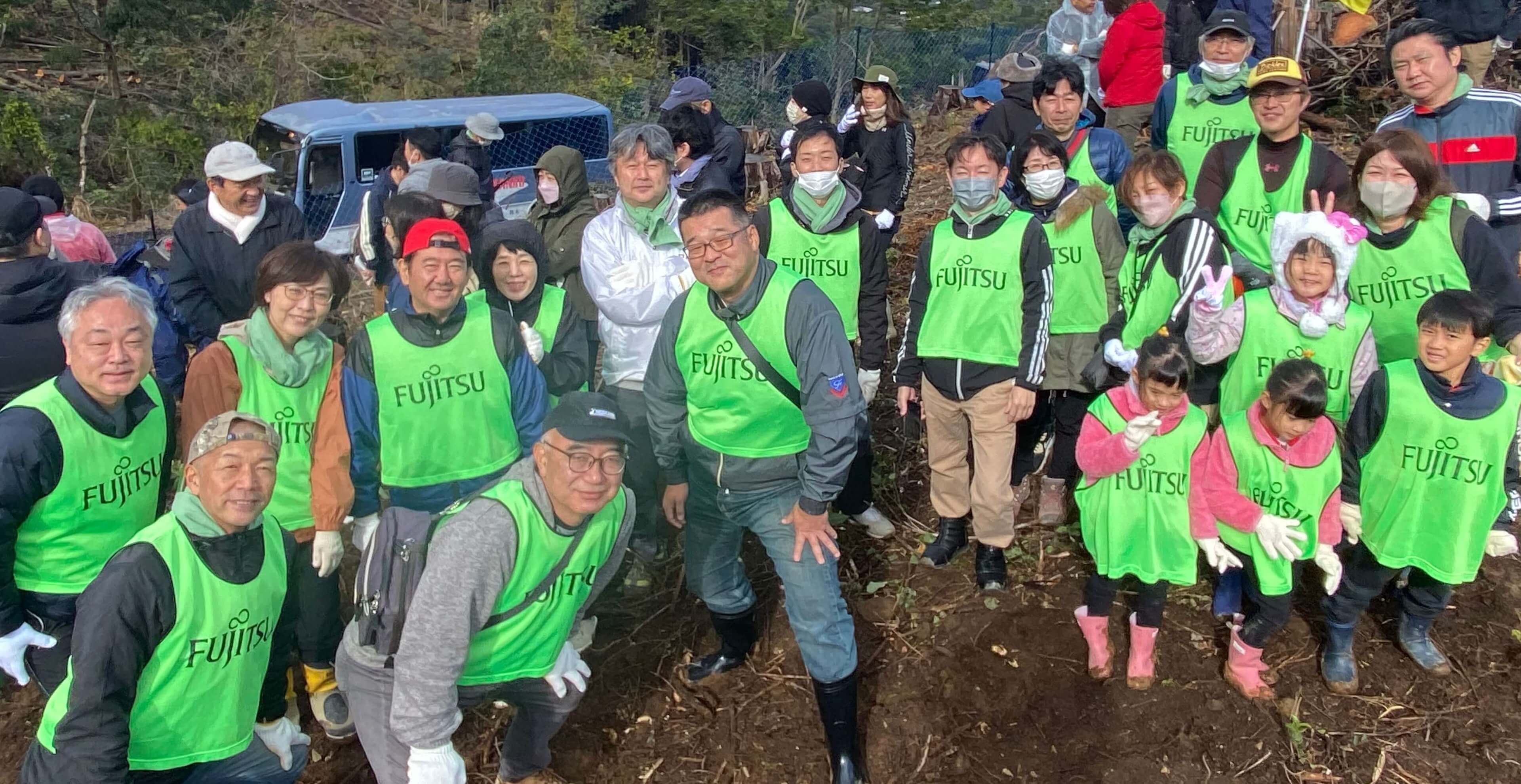 今年は、数年ぶりに社員や社員ご家族も参加し、和気あいあいとした雰囲気の中、参加者の手でスギ・ヤマザクラなどの苗木が植栽されました。