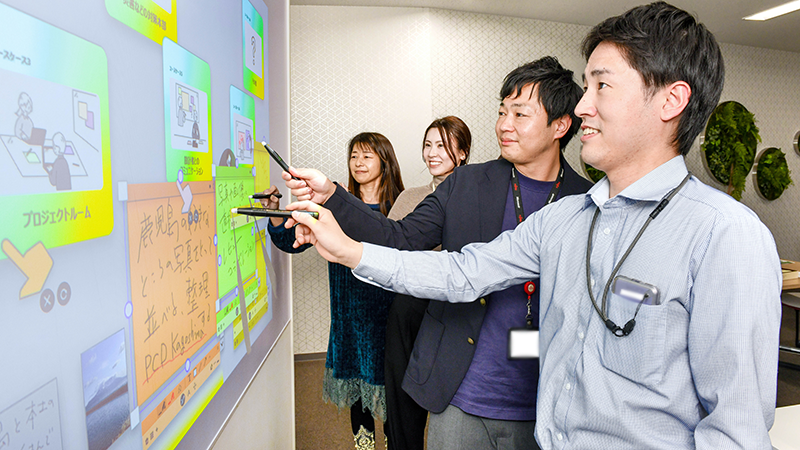 文字や画像等をデジタルの世界で自由に作成・共有できるため活発な議論が期待でき、リアルとオンラインの垣根を超えたディスカッションができるようになるツールです。