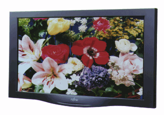 Reaching beyond the limitations of conventional CRTs, Fujitsu's pioneering 42-inch color PDP screen measures 920mm-wide by 518mm-high.