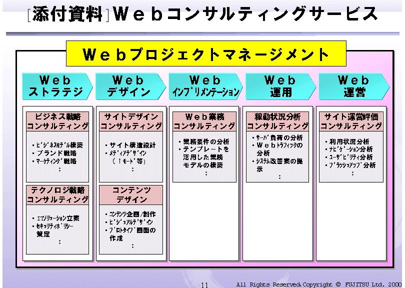 | ○ | 「Webコンサルティングサービス」 | 個別見積 | 2000年11月29日 |