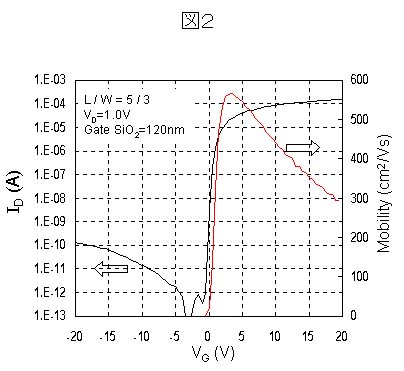 移動度を大きくするためには、ポリシリコン-TFTの結晶粒界を少なくする必要があり、結晶粒径を大きくできる結晶化技術の開発が望まれていました。しかもガラスが変形しない550℃以下の低温で実現する必要があります。 【開発した内容】 結晶粒界密度を減少させ、結晶粒径を大きくすることを目的に、従来のエキシマレーザ結晶化技術の代わりにエネルギー安定性が高い半導体励起固体CWレーザ(*6)を用いる結晶化技術を開発しました。この技術を用いて、現状の結晶粒に比べ、100倍程度の大きさの結晶粒を有するポリシリコン薄膜をガラス基板上に形成することができました (図1)。この結晶を利用して従来の450℃のプロセスによりTFTを形成した結果、現状のエキシマレーザ結晶化技術に比較して2 倍以上の移動度400-600 cm2/Vsを有するポリシリコン-TFTを30cm角のガラス基板上に実現することに成功しました(図2)。本技術は1m角以上のガラス基板にも容易に適用することが可能です。 【用語説明】