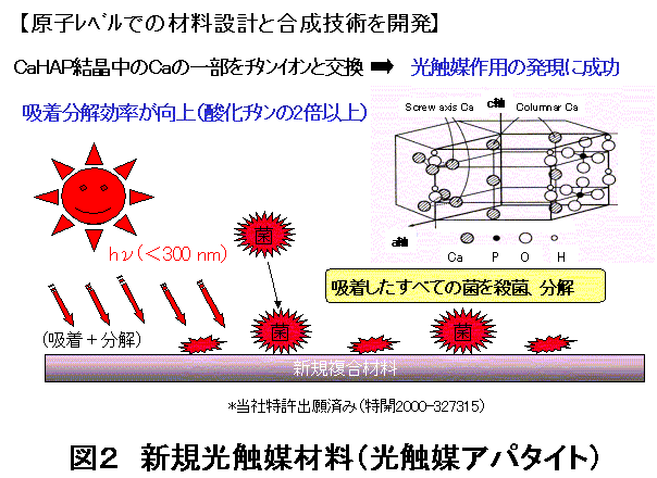 なお、光触媒アパタイトに関する特許は、富士通株式会社と東京大学先端科学技術研究センターが設立した技術移転会社(株)先端科学技術インキュベーションセンター(CASTI)との共同所有で、同技術は幅広い分野で応用できるようライセンスしていく予定です。 【用語解説または注釈】