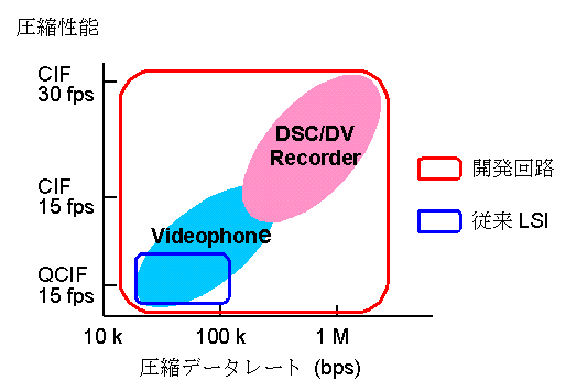 しかし従来のMPEG-4映像圧縮伸長LSIは、第三世代携帯電話での利用を目的としていたため、デジタルカメラなどの高画質の圧縮処理には不向きでした。