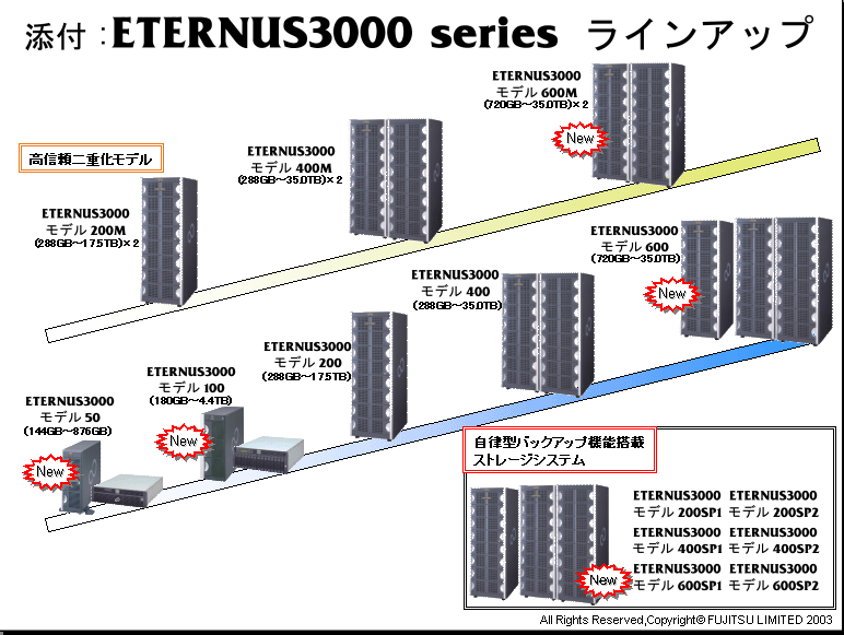- 高信頼二重化モデル「ETERNUS3000 モデル600M」、自律バックアップ機能を搭載したストレージシステム「ETERNUS3000 モデル600SP」
