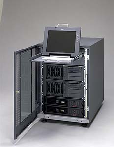 当社は今後、高性能ブレードサーバ、およびインテル社の64ビットプロセッサItanium®2を搭載したサーバを開発し、2003年度第4四半期に提供を開始する予定です。高性能ブレードサーバは、CPUにXeonTMプロセッサを採用しながら、7U(約32cm)のシャーシに最大10枚のサーバブレードを搭載可能な省スペース設計です。
