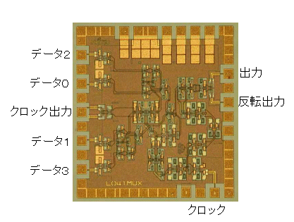 図1 4:1マルチプレクサ回路チップ概観写真 (GIF:62KB) |