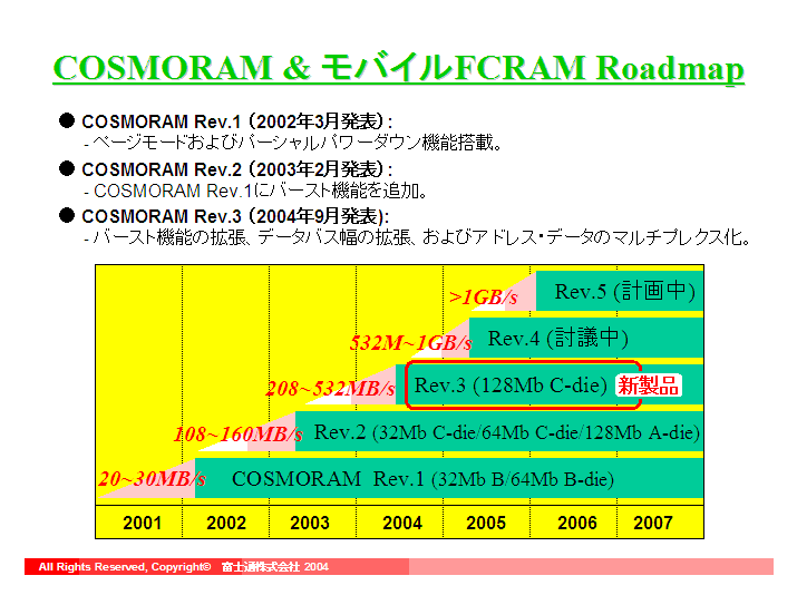 COSMORAM&モバイルFCRAM Roadmap [クリックすると拡大表示されます]