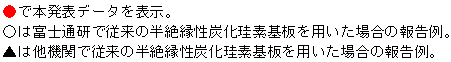 - ワイドバンドギャップ半導体で、シリコン(Si)やガリウム砒素(GaAs)など従来の半導体材料に比べ、電圧による破壊に強いという特長がある。