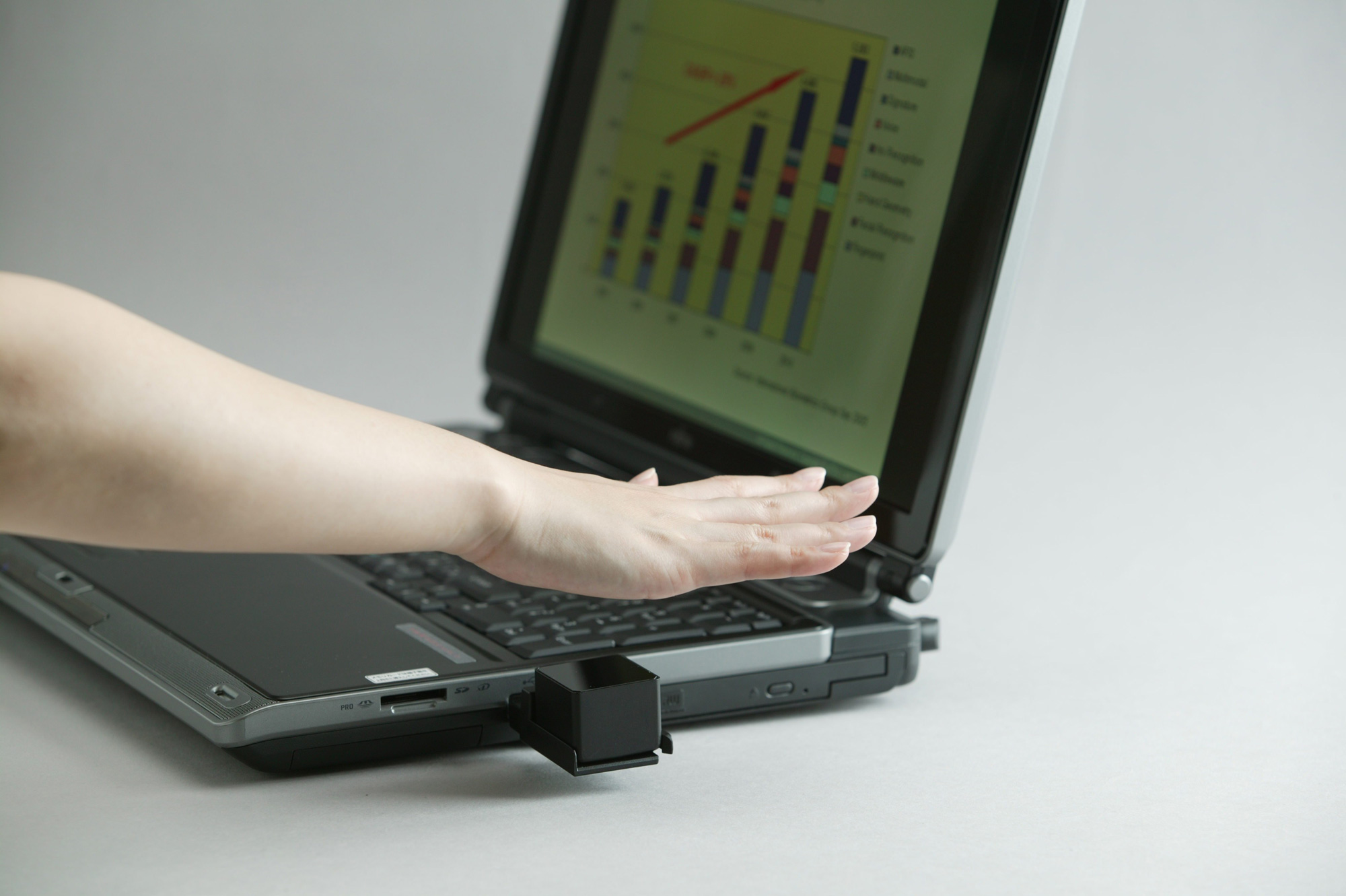 「非接触型手のひら静脈認証装置」について、日本では2004年7月の販売開始以来約1万台を超える販売実績があります(金融機関6,000台、PCログイン1,000台、入退室300台、組込部品3,300台)。既に貸金庫や図書館システムなどにも適用されるなど、その活用シーンはますます拡がっており、今後は複写機や電子カルテなどさまざまな製品・システムへの応用も容易になります。