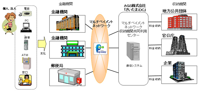 AGS株式会社(取締役社長:小川 修一、本社:埼玉県さいたま市、以下、AGS)は、所有するインターネットデータセンター「さいたまiDC」が提供するサービスとして、4月24日に、地方公共団体様や民間企業様などの収納機関向けに「マルチペイメントネットワーク(注1)収納機関共同利用センター(注2)」の提供を開始します。
