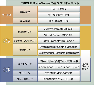 「TRIOLE BladeServer」の主要な構成製品は、以下の通りです。