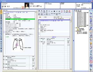 診察内容ごとのテンプレートや伝票などの豊富な入力補助画面により、電子カルテへの入力が簡単にできます。利用者ごとに自由に設定できるメニューボタンとツールバーで使いやすい操作環境の設定や、ドラッグ&ドロップを中心とした直感的なマウス操作での入力が可能です。