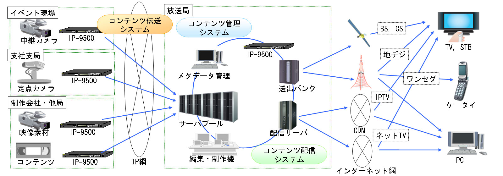 当社は、ブロードバンド映像ソリューション「Broadsight(ブロードサイト)」(注1)の新ラインナップとして、主に放送業界を対象に、高効率映像符号化方式H.264 (注2)を採用したハイビジョン映像(注3)伝送装置「IP-9500」を本日より販売開始いたします。