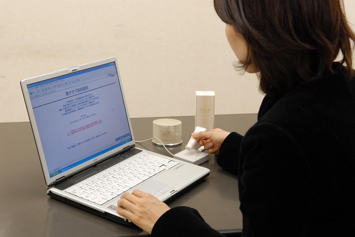 百貨店業界では、すでに婦人靴とアパレルの分野において電子タグを使った在庫管理が実用化されていますが、化粧品に電子タグを添付した実験が行われるのは、今回が初めてです。