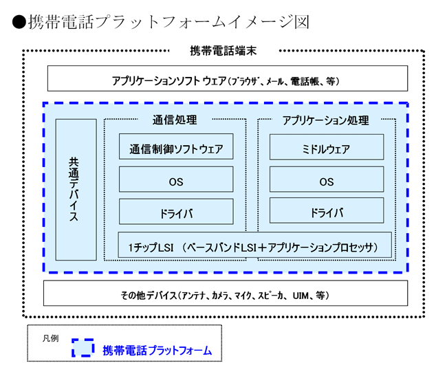 今回、ソニー・エリクソンを加えた6社で共同開発する本プラットフォームは、5社で開発中のプラットフォームの後継として、機能を強化したワンチップLSI「SH-Mobile G3」と、オーディオ・電源LSI、RF LSIなどの推奨周辺チップセットLSIを含むリファレンスデザインを共同開発し、基本ソフトウェアとして、シンビアンOS™を搭載、ミドルウェア・ドライバなどの基本ソフトウェア群を一体化しています。