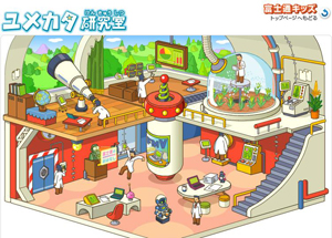 メインのコンテンツとなる「ユメカタ研究室」では、 英知と想像力の結晶により新たなものが生みだされる「研究室」をモチーフに、「手のひら静脈認証」「カラー電子ペーパー」「植物性プラスチック」など、これまで当社がかたちにしてきた夢・技術の一例を楽しいイラストやアニメーションでご紹介します。この研究室をきっかけに、「夢を語り、夢をかたちにする場」として子どもたちの夢が花開くよう、「ユメカタ研究室」と名づけました。