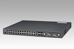 1U(高さ 44mm)のコンパクトサイズに、1000BASE-Tを20ポート、1000BASE-TまたはSFP(注3)として利用できるポートを4ポート標準搭載しました。業務サーバの集線スイッチや、フロアスイッチを集線する中小規模のバックボーンスイッチとして最適です。