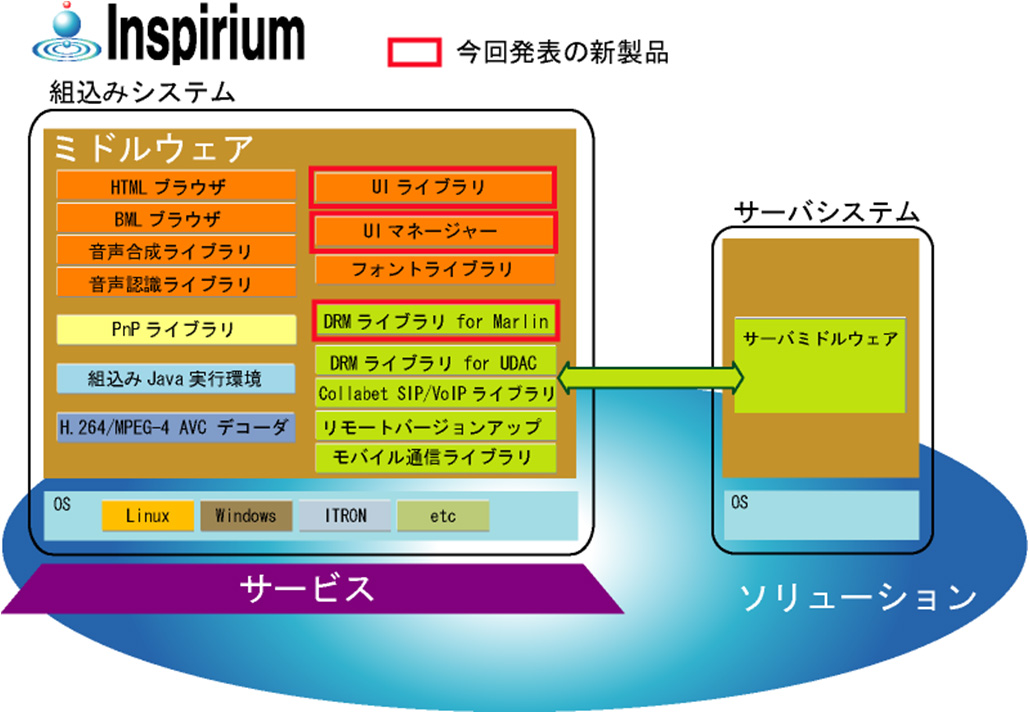 当社は、組込みソフトウェア「Inspirium(インスピリアム)」シリーズの製品ラインナップに、組込みユーザーインターフェース(以下、UI)向け製品の「Inspirium UIマネージャー V1.0」「Inspirium UIライブラリ V1.0」を追加し、5月16日より販売開始しました。また、Marlin(注1)対応製品の「Inspirium DRMライブラリ for Marlin V1.0」を、6月中旬より販売開始する予定です。
