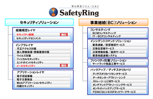 当社は、「事業継続ソリューション」と「セキュリティソリューション」により構成される安心安全ソリューション「SafetyRing」を提供し、お客様の企業価値向上に向けた統合的なリスクマネジメントを支援してまいりました。