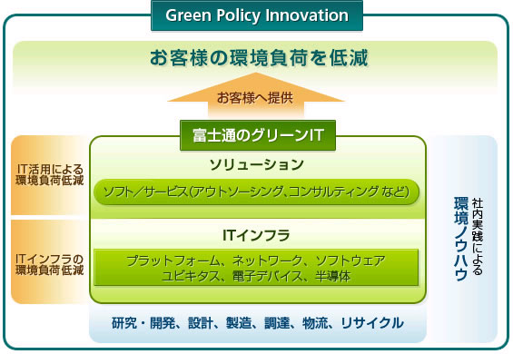 当社は創業以来、環境保全を経営の最重要事項と位置づけ、継続的に環境活動を実践してきました。今般、IT企業としてのさらなる社会的責任を果たすべく、「Green Policy Innovation」を開始します。これまで培ってきたグリーンITへの取組みをさらに強力に推進し、お客様の環境負荷低減に貢献していきます。