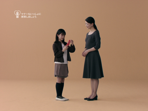 「キッズケータイ F801i」のTV-CMは、紺野美沙子さんと子ども(女の子)が登場するシンプルな映像で構成されています。親の気持ちを代弁する真摯なメッセージ、女の子が大人っぽく「キッズケータイ F801i」を使って通話するしぐさ、豊富な機能を伝える文字情報、4色の「キッズケータイ F801i」をずらりと並べたスタイリッシュな映像で構成し、「あんしん」と「カッコよさ」を伝えます。