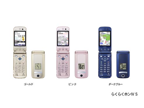らくらくホンシリーズは、「しんせつ」「かんたん」「見やすい」「あんしん」のコンセプトで、誰にでも使いやすい携帯電話として、本年2月に累計販売台数1,200万台を突破(注2)した大ヒット商品です。「らくらくホンⅣS」は、「らくらくホンⅣ」では対応していないNTTドコモの新販売モデルに対応し、カラーバリエーションも「ゴールド」「ピンク」「ダークブルー」と一新しています。
