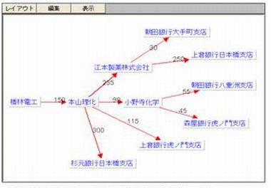 ![]() 図 : 顧客企業の資金の流れを表すマップ (マップ中の企業名、銀行名などは架空のものです) |