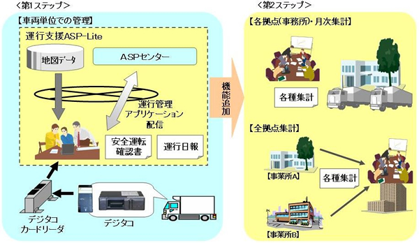 当社は、輸配送業界の配送車両などに搭載されているデジタル式運行記録計(以下、デジタコ)に記録した運行情報・作業情報に基づき、運転日報や安全運転確認書などを作成し、情報を管理・分析するASP(注1)サービス「運行支援ASP-Lite(エーエスピーライト)」を販売開始します。